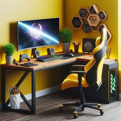 Góc gaming mang gam màu vàng chiến thắng, tượng trưng cho sự may mắn, thành công và khát vọng chinh phục mãnh liệt của game thủ, biến họ trở thành những chiến binh bất khả chiến bại trong mọi trận chiến game.
