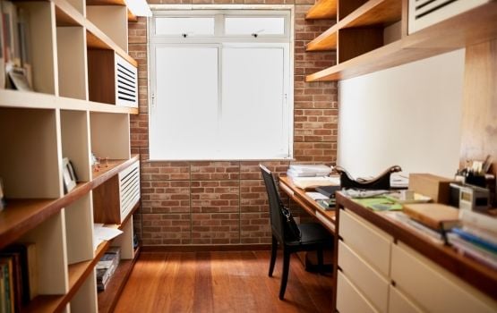 Góc làm việc lý tưởng là nơi bạn có thể dễ dàng kết nối với các khu vực khác trong nhà, chẳng hạn như phòng khách, phòng bếp hoặc phòng ngủ. Điều này giúp bạn thuận tiện di chuyển, trao đổi công việc và tham gia các hoạt động chung với gia đình.