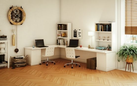 - Ánh sáng phản chiếu trên các bề mặt màu sáng sẽ giúp khuếch đại diện tích, khiến cho góc làm việc của bạn trông rộng rãi hơn so với thực tế.