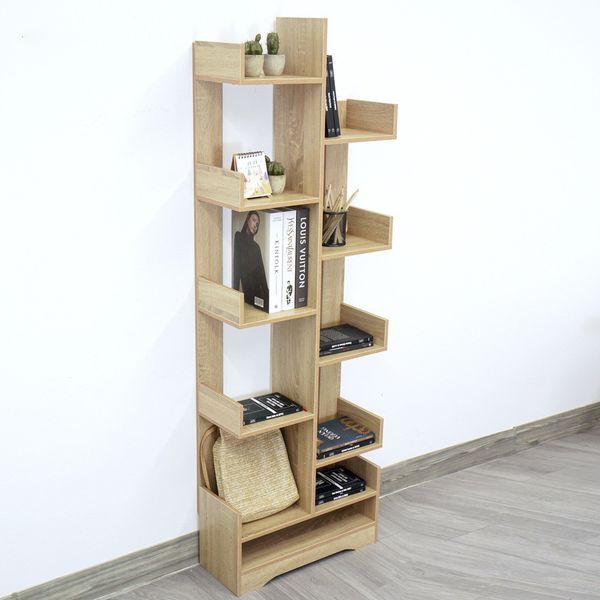 Kệ sách hình cây đa năng có nhiều ngăn lưu trữ sách vở, tài liệu, đồ đạc... Không kén chọn không gian, thích hợp với mọi phong cách bài trí decor nội thất.