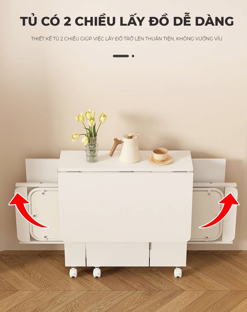 - Bánh xe tiện di chuyển – có khoang tủ để đồ tiện lợi