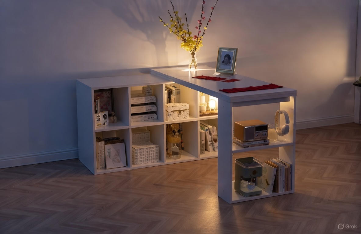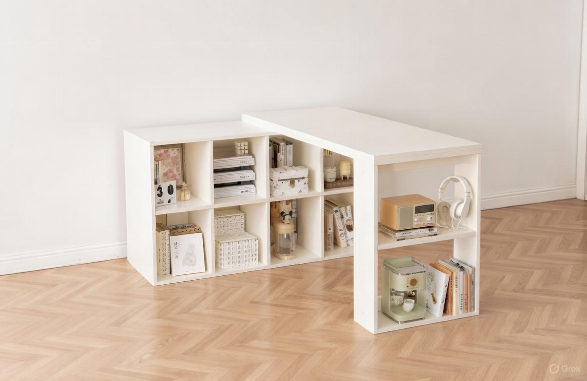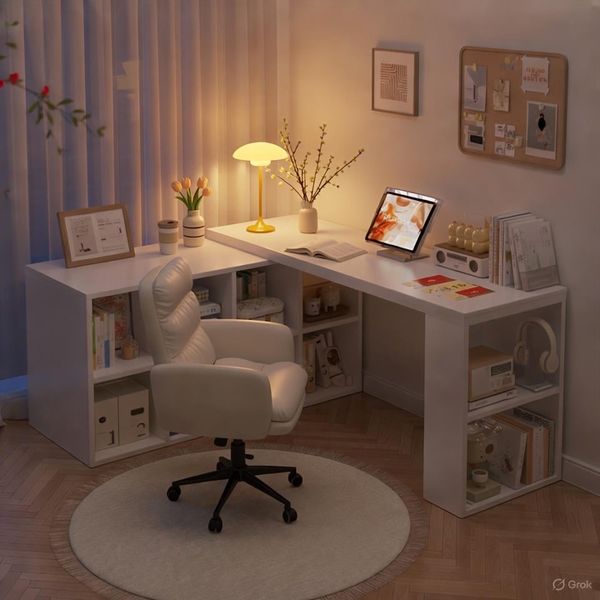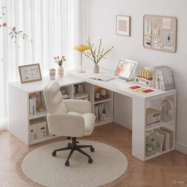 - Thiết kế đa năng: Kết hợp bàn làm việc, tủ lưu trữ và kệ sách, phù hợp cho cả phòng ngủ và văn phòng.