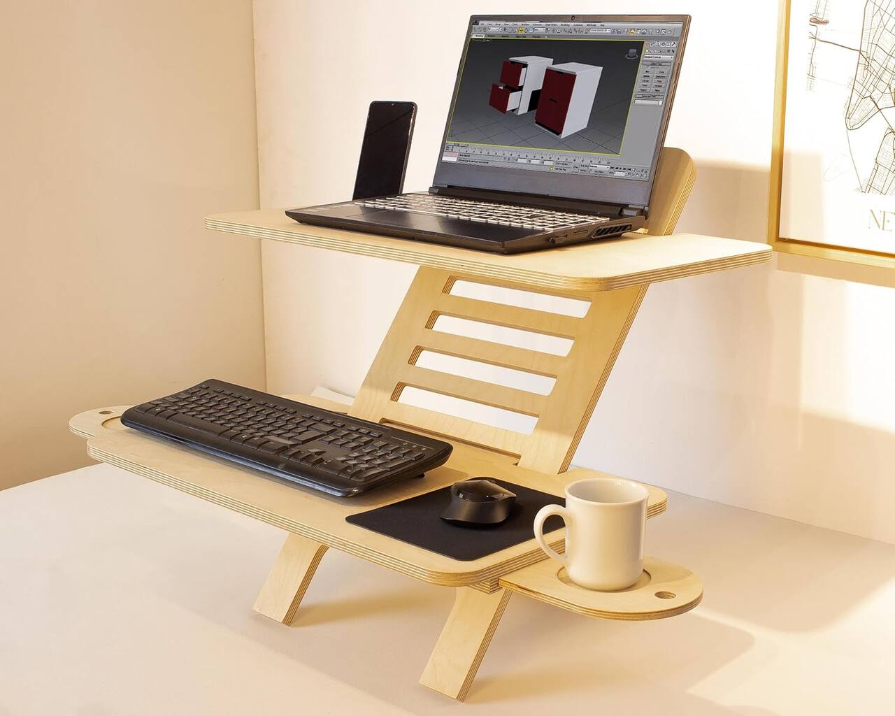 - Thiết kế hai tầng thông minh: tầng trên đặt laptop, tầng dưới phù hợp cho bàn phím, chuột và các vật dụng cá nhân, giúp không gian làm việc luôn gọn gàng, khoa học.