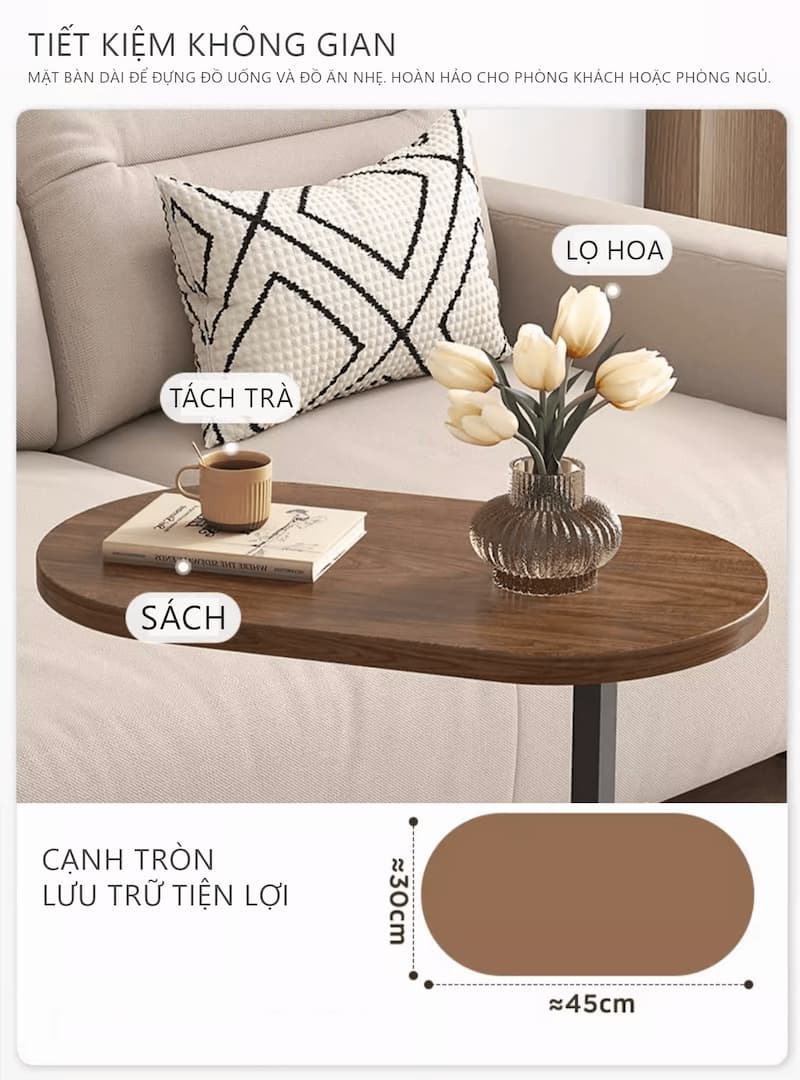 - Công năng: Mẫu bàn trà có thể được sử dụng cho nhiều mục đích cũng như công dụng khác nhau khi mà với kích thước nhỏ gọn bạn có thể di chuyển cũng như sắp xếp ở mọi không gian khác nhau. Ngoài ra, sản phẩm còn có thể được sử dụng cho việc trưng bày hay sử dụng để làm bàn đầu giường,...
