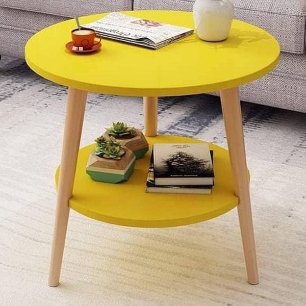 Bàn trà chân tròn 2 tầng mặt bàn vàng