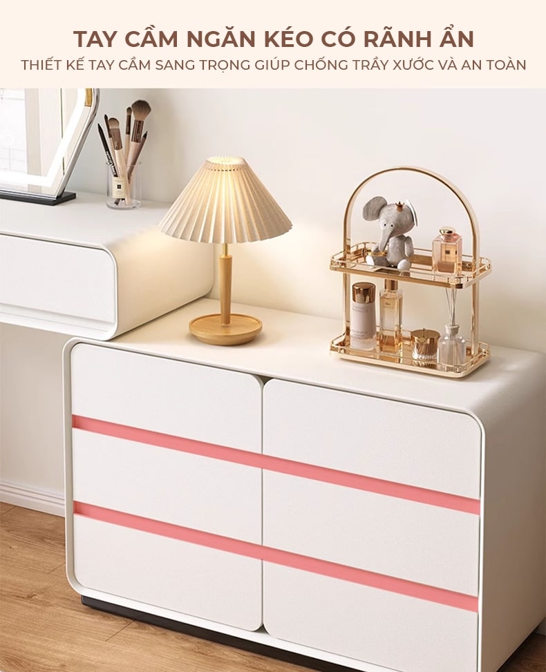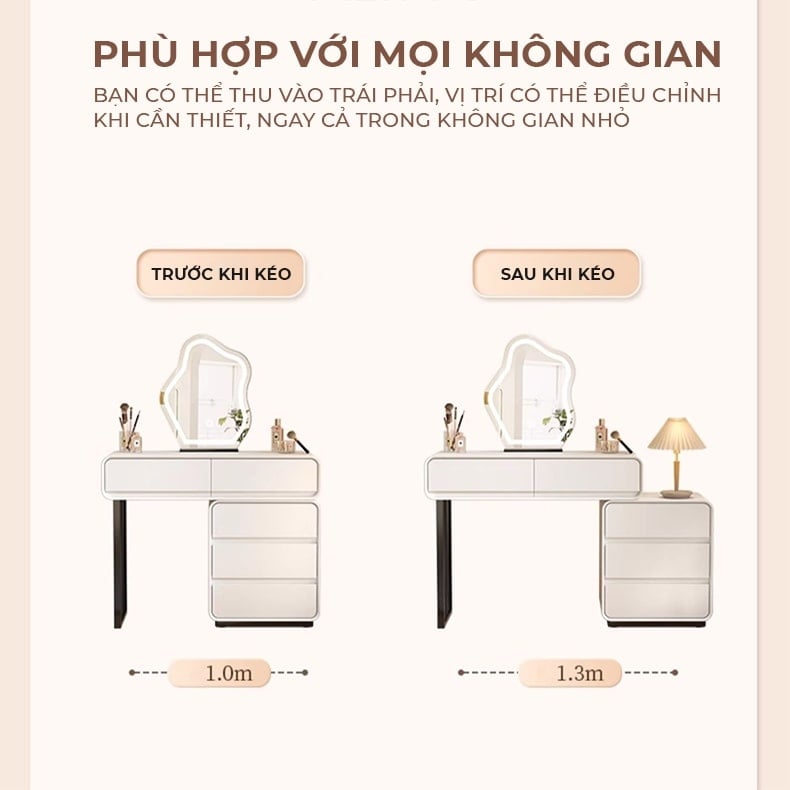 - Công năng đa dạng: Vừa là bàn trang điểm, vừa là bàn làm việc.