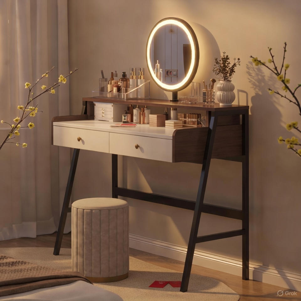 - Dễ dàng lắp đặt: Bàn trang điểm thường được thiết kế với cấu trúc đơn giản, dễ dàng lắp ráp và di chuyển.