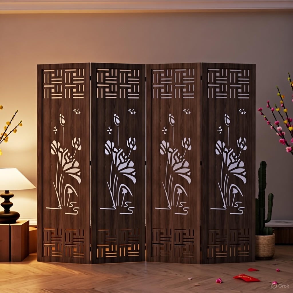 Thiết kế trang nhã với họa tiết hoa sen truyền thống, Bình phong GP396.06 mang đậm hơi thở Á Đông, là điểm nhấn tinh tế cho mọi không gian sống.