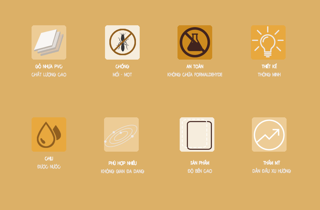 - Gỗ Nhựa Composite PVC cao cấp chống cong vênh, mối mọt, chống cháy.