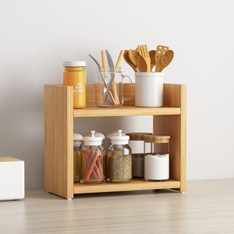- 2 tầng rộng rãi: Cung cấp không gian đủ để bạn sắp xếp các loại gia vị, chai lọ, dụng cụ nhà bếp một cách ngăn nắp.