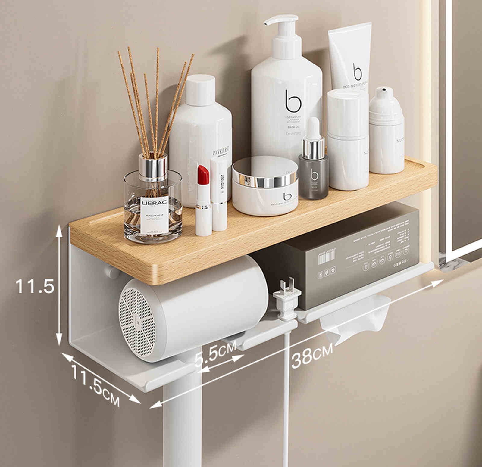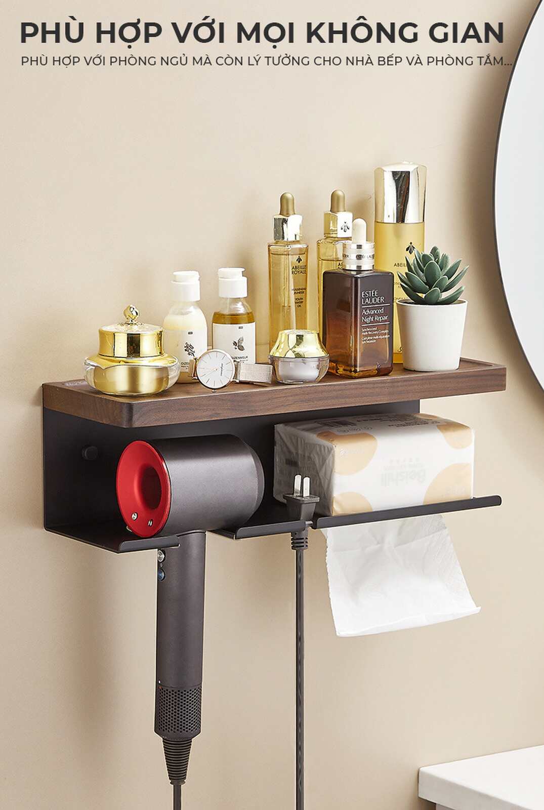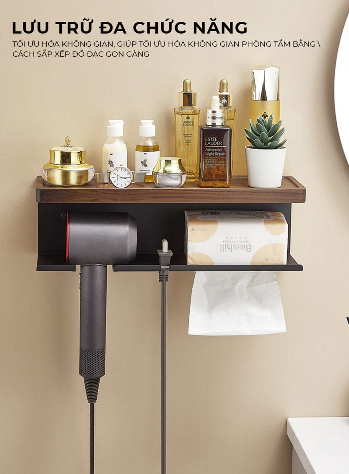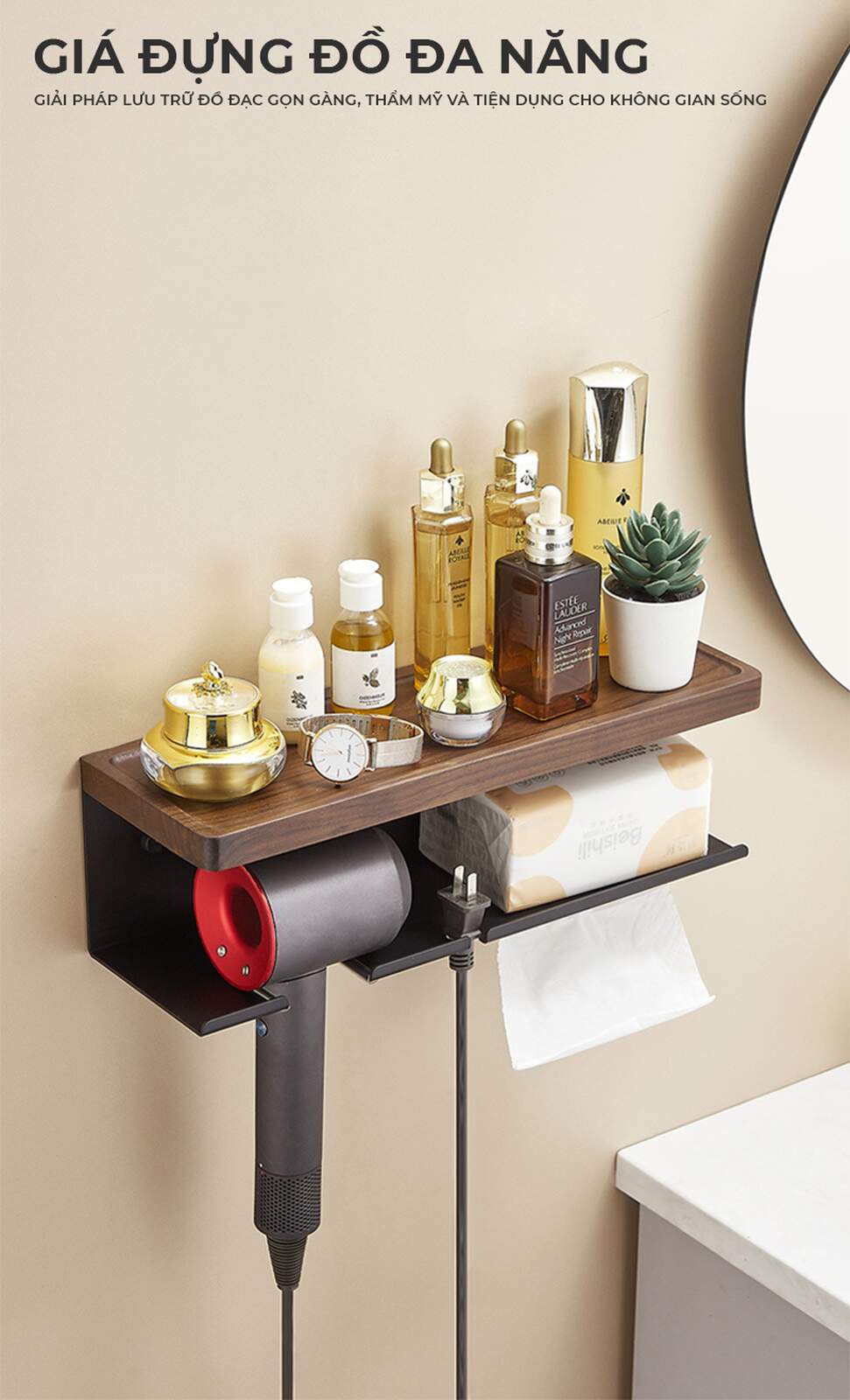 - Tiện lợi sử dụng: Dễ dàng vệ sinh, thiết kế hình chữ U chống rơi đồ dùng như máy sấy tóc.
