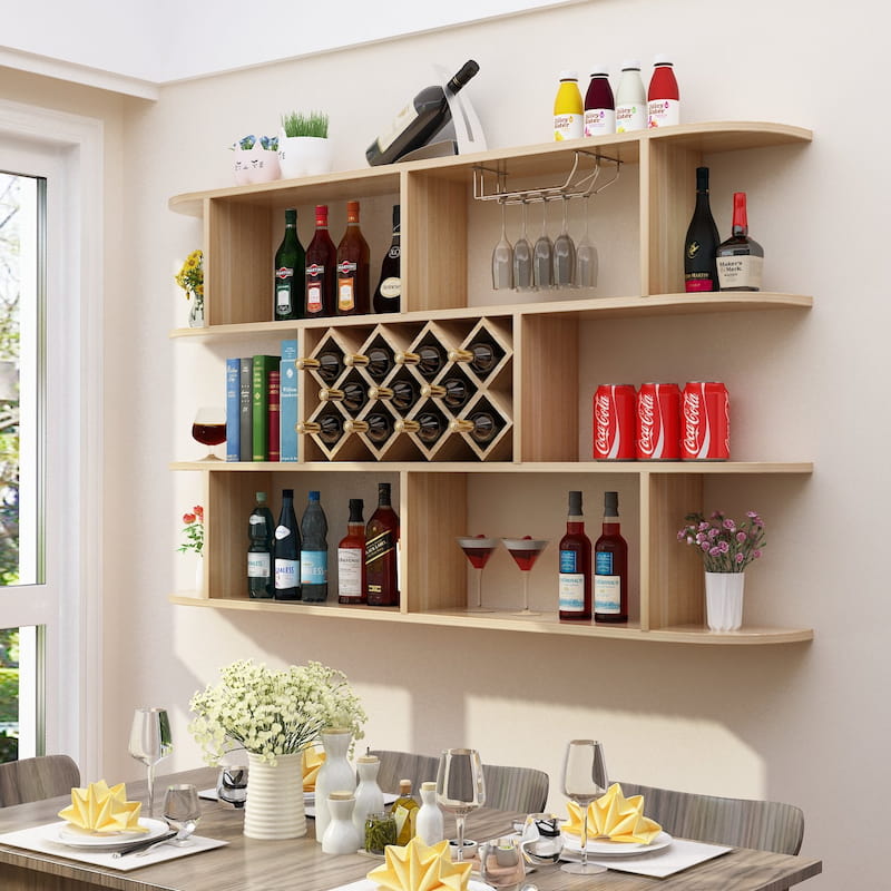Kệ để rượu treo tường 4 tầng - GP46 được làm bằng gỗ MDF phủ Melamine đã quá trình xử lý chống mối mọt, conh vênh giúp bề mặt kệ trở nên đẹp mắt, dễ dàng lau chùi khi sử dụng. Với thiết kế nhỏ gọn, thông minh, kệ để rượu sẽ giúp bạn sắp xếp ngăn nắp các vật dụng trong gia đình. Bạn sẽ không còn phải băn khoăn về việc nên để ly, tách, chai rượu ở đâu sao cho hợp lý nữa, kệ treo tường sẽ giúp bạn làm điều đó. Nhờ vậy mà ngôi nhà của bạn sẽ được tô điểm, trang trí thêm phần đẹp mắt, tinh tế hơn.