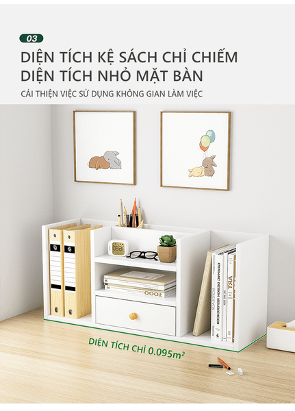 Công năng: Kệ sách để bàn có thể được sử dụng để bào quản, lưu trữ tài liệu sách vở, trung bày các vật dụng cá nhân, trang trí góc làm việc trở nên độc đáo hơn,...