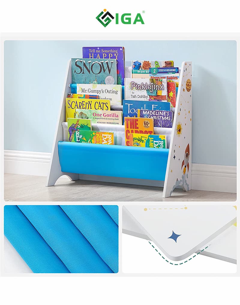 - Dễ sử dụng: Tầng thấp, thiết kế mở giúp bé dễ dàng lấy sách và tự sắp xếp