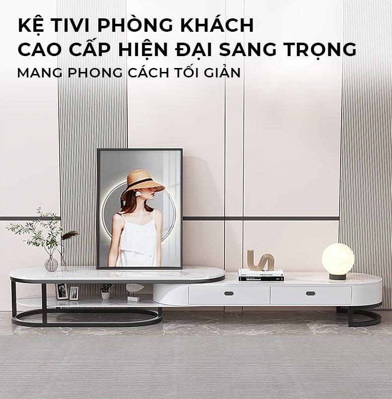 - Sang trọng, hiện đại: Thiết kế tinh tế, chất liệu cao cấp giúp kệ tivi trở thành điểm nhấn nổi bật cho không gian phòng khách.